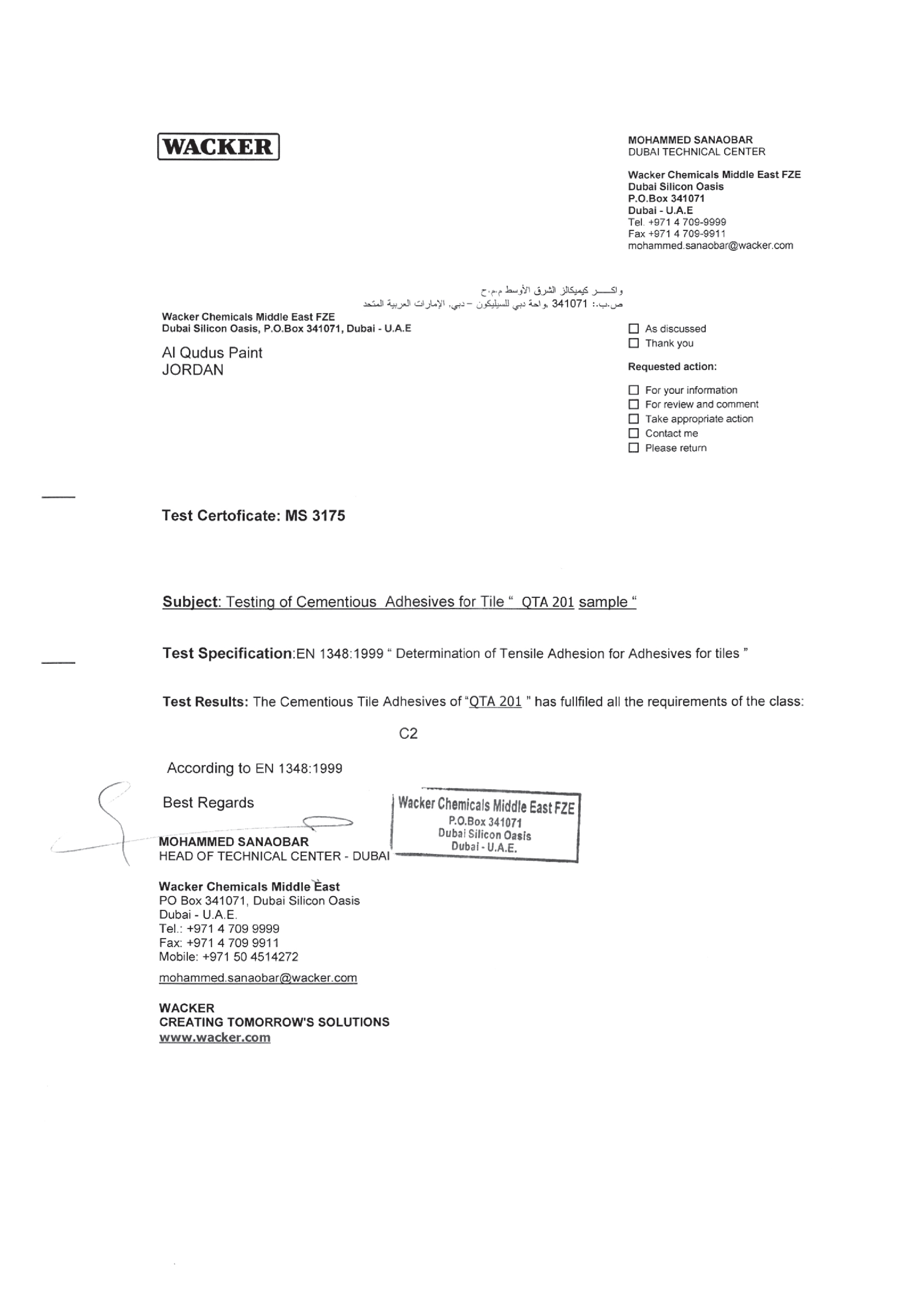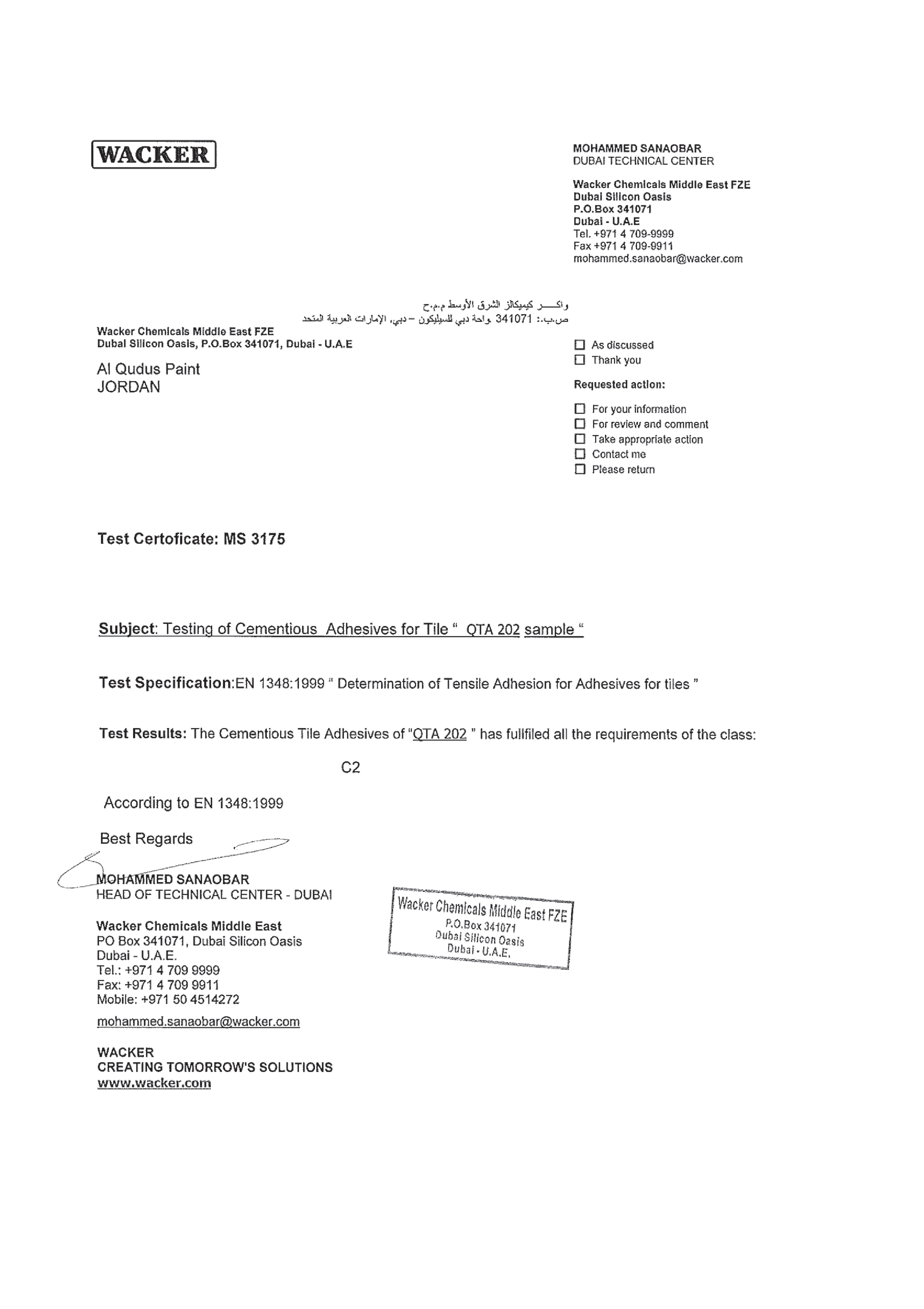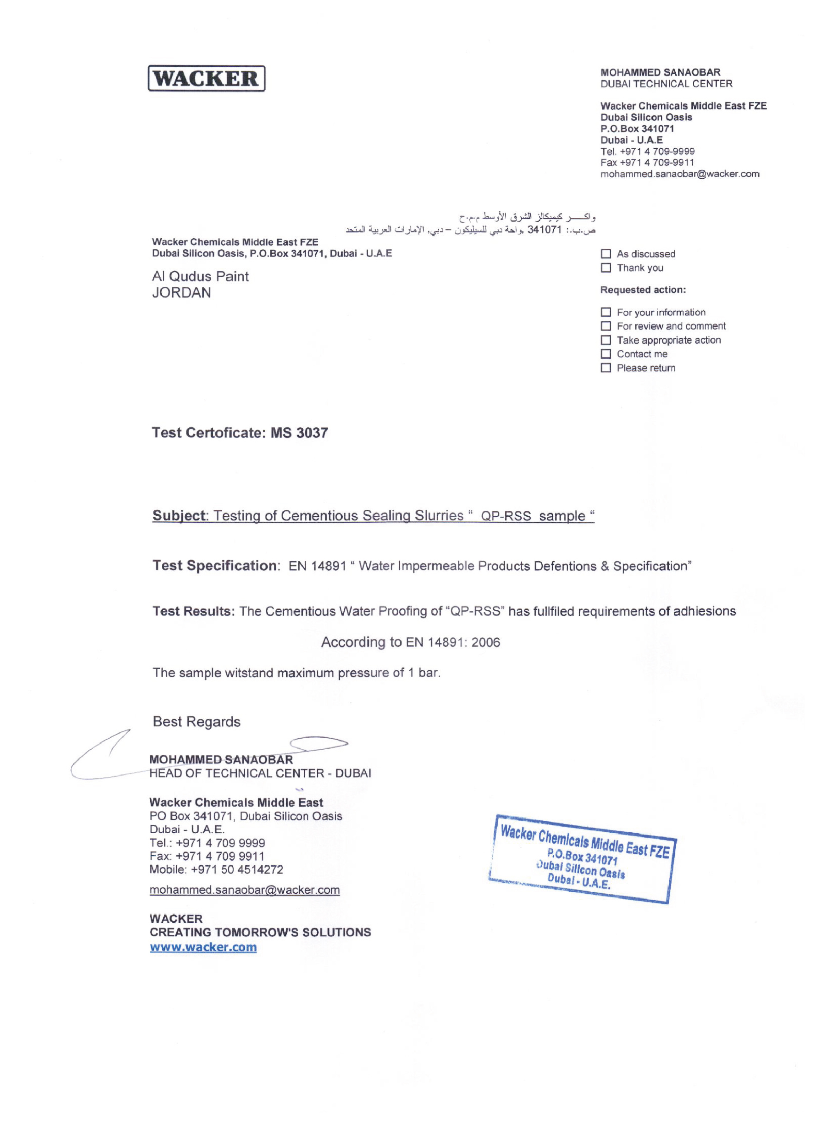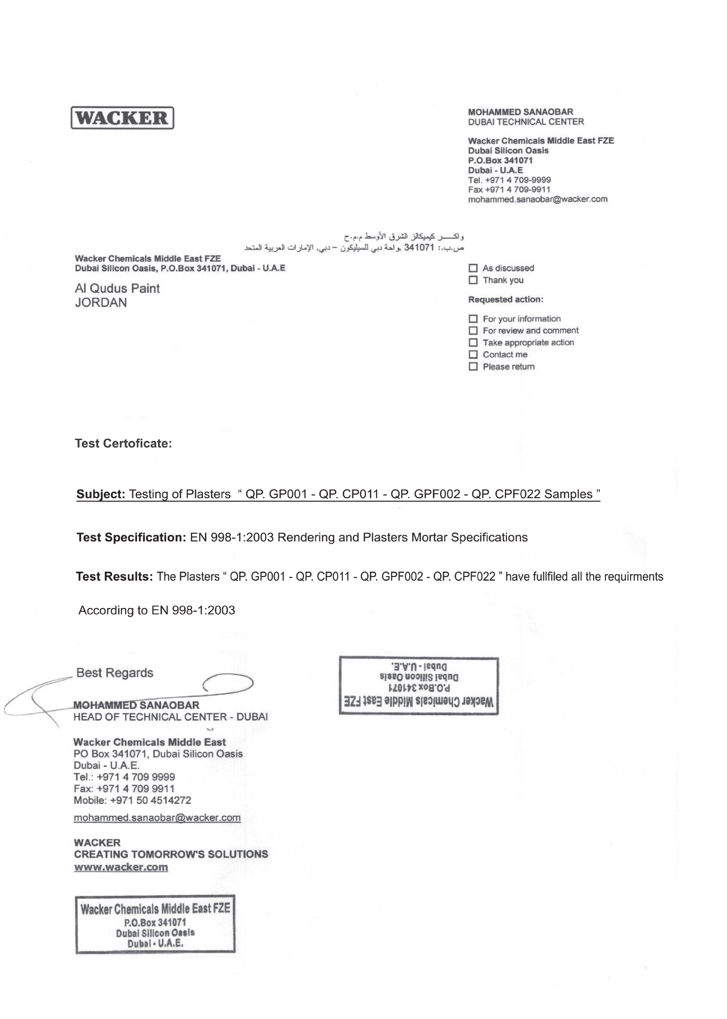 ولتعزيز موثوقية منتجاتها، اعتمدت دهانات القدس المواصفات الأوروبية EN Standards والمواصفات العالمية ISO في عمليات التصنيع والاختبار، لتضمن السلامة والكفاءة والمتانة في جميع منتجاتها.